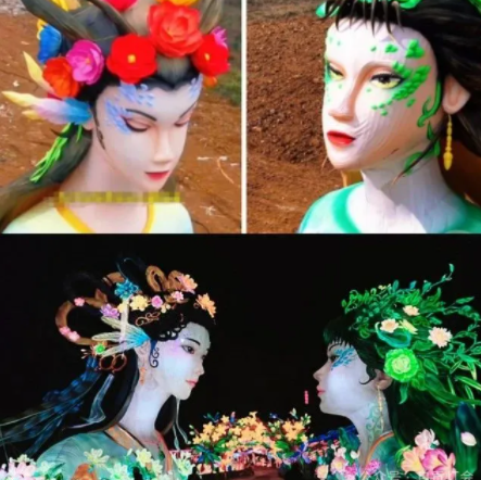 創(chuàng)作融合傳統(tǒng)工藝與現(xiàn)代科技——設(shè)計師首創(chuàng)作具有中國韻味的女性形象雛形,燈會主辦方國投集團華薈公司設(shè)計團隊結(jié)合影視CG美學(xué)對3D模型的臉型、五官及發(fā)型反復(fù)優(yōu)化,確保既符合神話角色特征又契合現(xiàn)代審美。百余名工匠以傳統(tǒng)絲架造型結(jié)合數(shù)字建模技術(shù),歷時近兩月完成立體轉(zhuǎn)化。備受爭議的制作難點集中于巨型頭像的妝容呈現(xiàn):團隊從700余張妝造圖中精選設(shè)計方案,因頭像規(guī)模導(dǎo)致的透視變形、布匹裱膚材質(zhì)限制,整個制燈過程僅有一次上妝機會且無法修改,使妝容難度遠超造型階段。美工團隊?wèi){借極致匠心,依托三臺工程車高空協(xié)作,耗時7天以丙烯顏料精準(zhǔn)完成零容錯繪制,最終成就展現(xiàn)自貢彩燈頂尖工藝水準(zhǔn)的典范之作。追求。